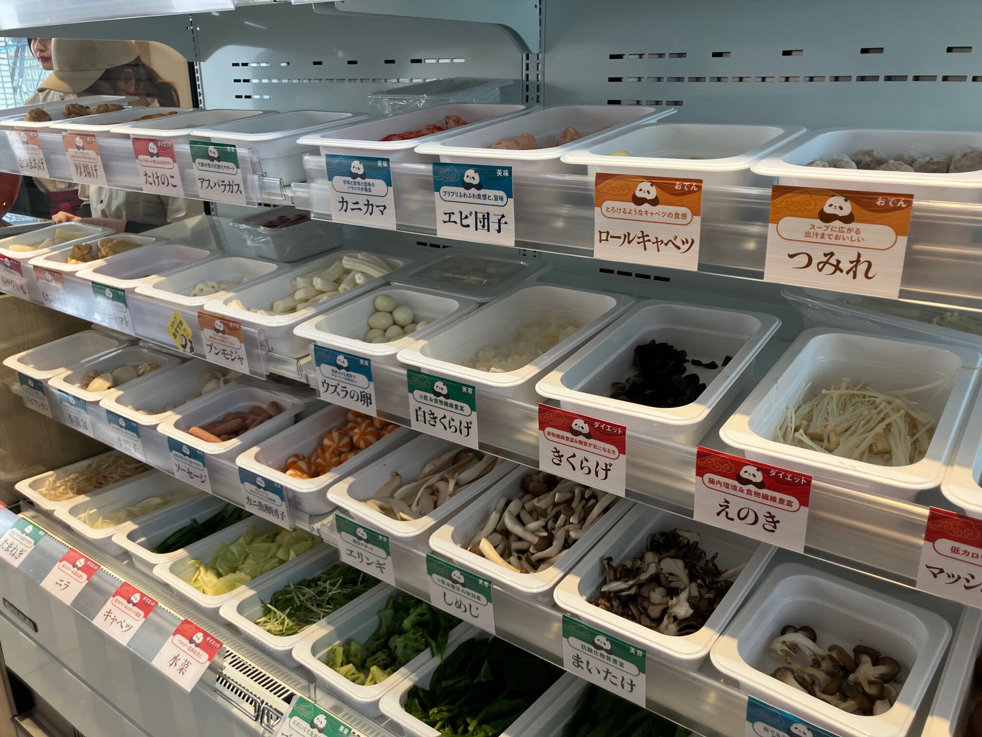 提供スタイルは、一般的に麻辣湯マーケットで主流となっているセルフ・ピックアップ方式を採用。店内中央の冷蔵ケースには、野菜、きのこ、豆腐、肉、海鮮など常時40種類以上の厳選食材をラインナップ。ボウルに好みの具材をピックアップし、カウンターで「スープの辛さ(麻辣レベル)」と「5種類の麺」を選択する。基本構成(スープ+麺)を620円に設定。トッピングは1gあたり3.1円の量り売りスタイルとし、さらに個別の有料追加トッピング(牛肉・豚肉・羊肉・サーモン・タラ・えび・カキ・ホタテ・パクチー・イカ・アサリ・納豆・モッツアレラ ※+150円均一)も用意した。